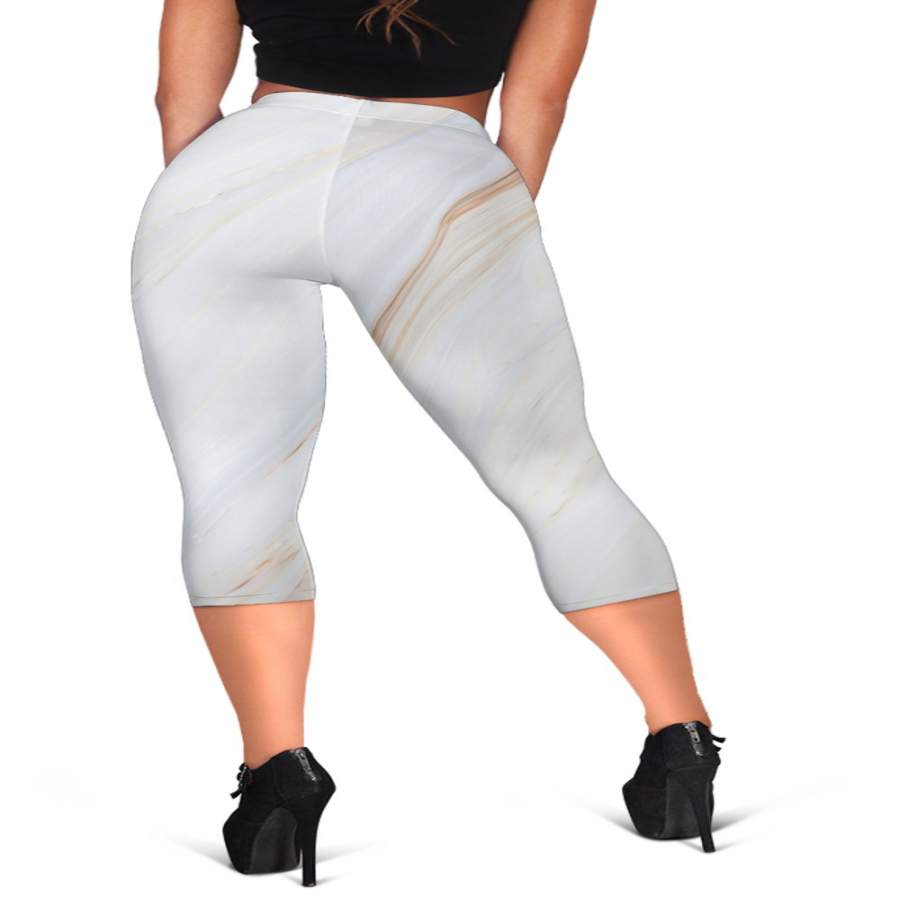 White Brown Smooth Marble Print Women’s Capri Leggings