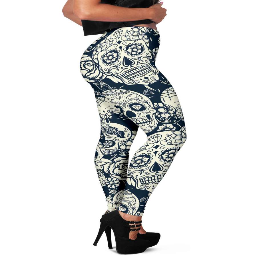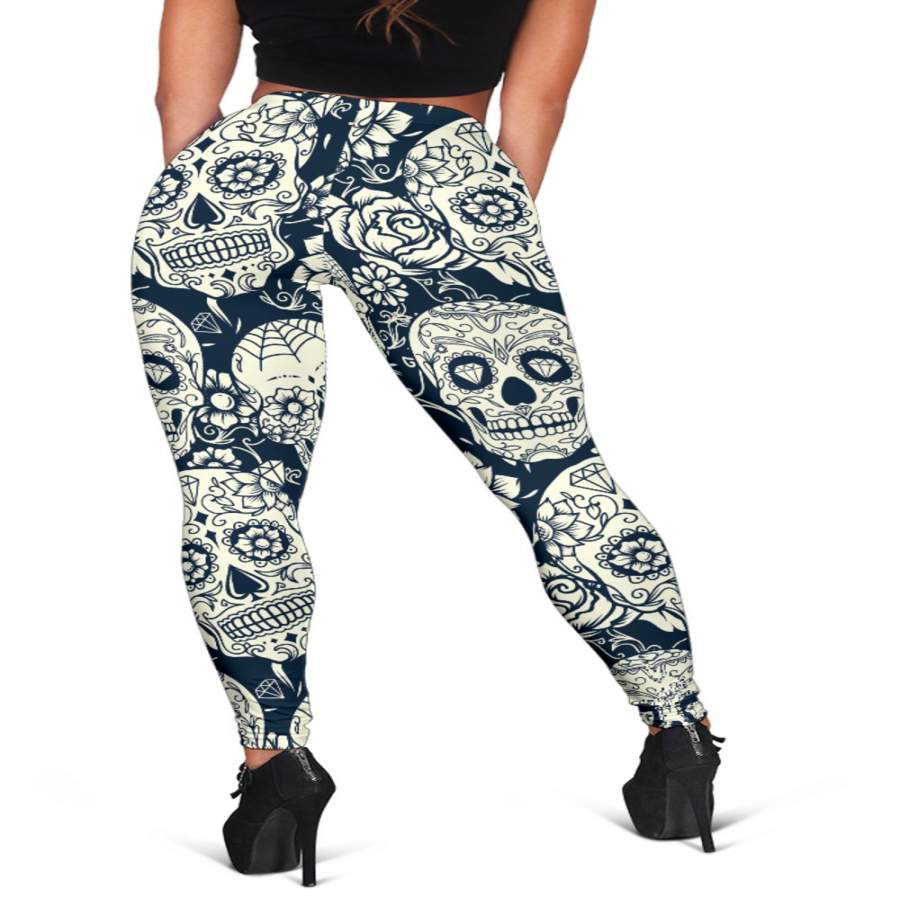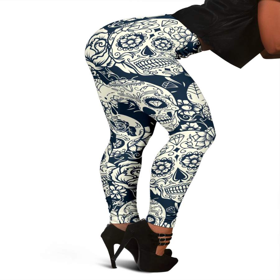 White Floral Sugar Skull Pattern Print Women’s Leggings
