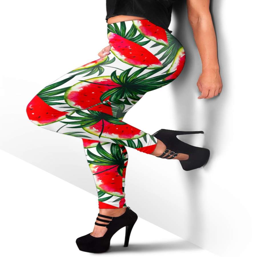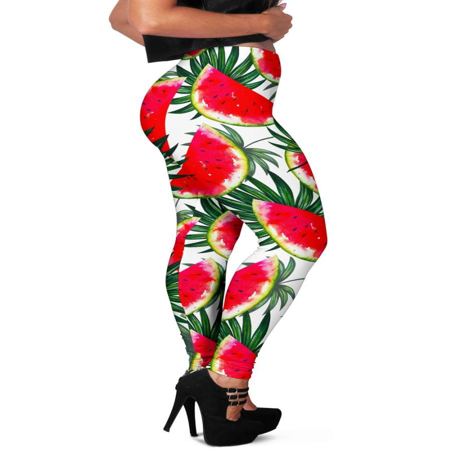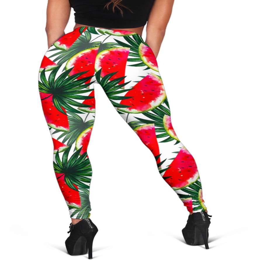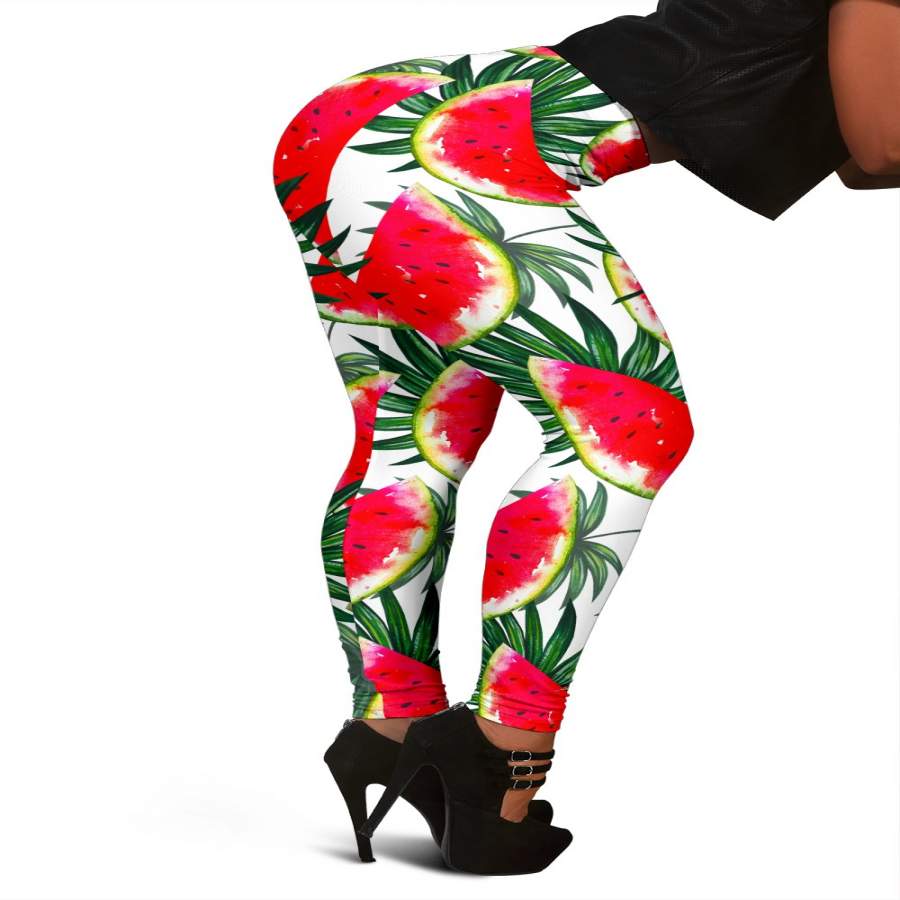 White Palm Leaf Watermelon Pattern Print Women’s Leggings