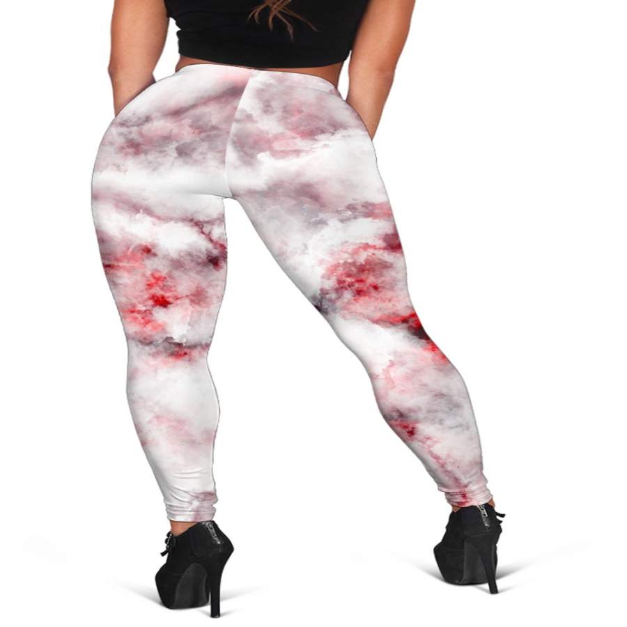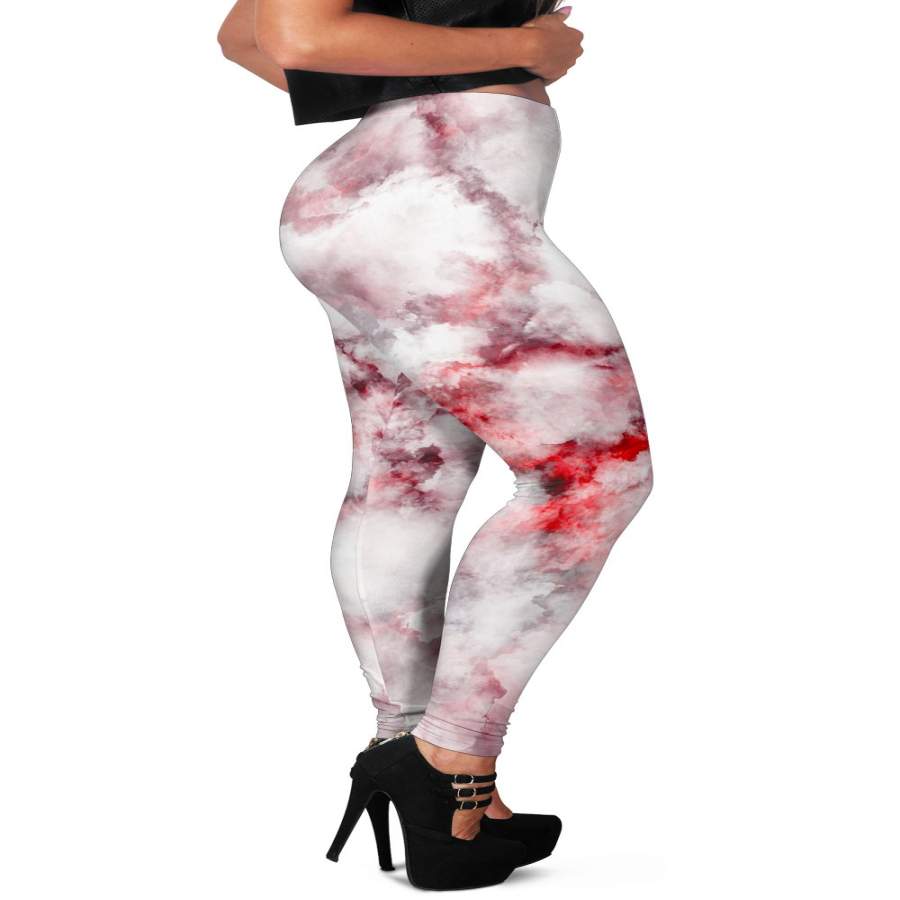 White Ruby Marble Print Women’s Leggings
