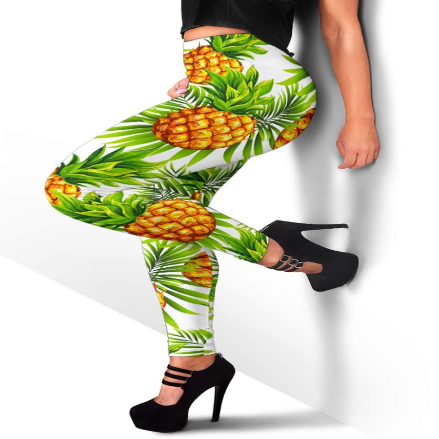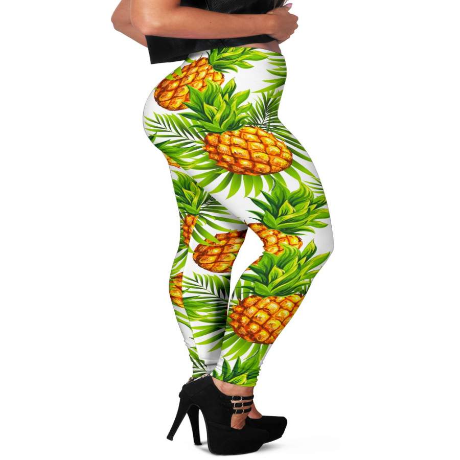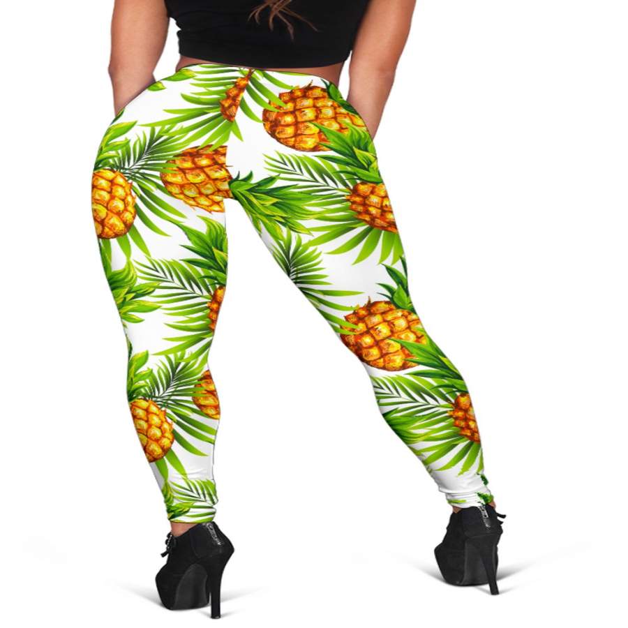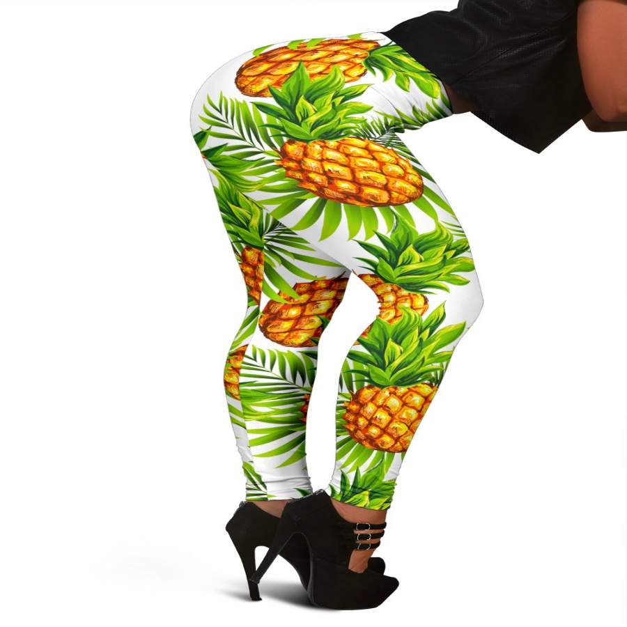 White Tropical Pineapple Pattern Print Women’s Leggings