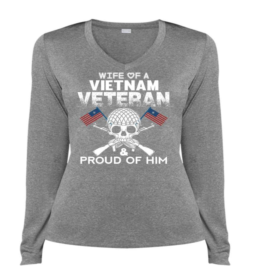 Wife Of A Vietnam Veteran T Shirt, Being A Veteran T Shirt, Cool Shirt (Ladies LS Heather V-Neck)