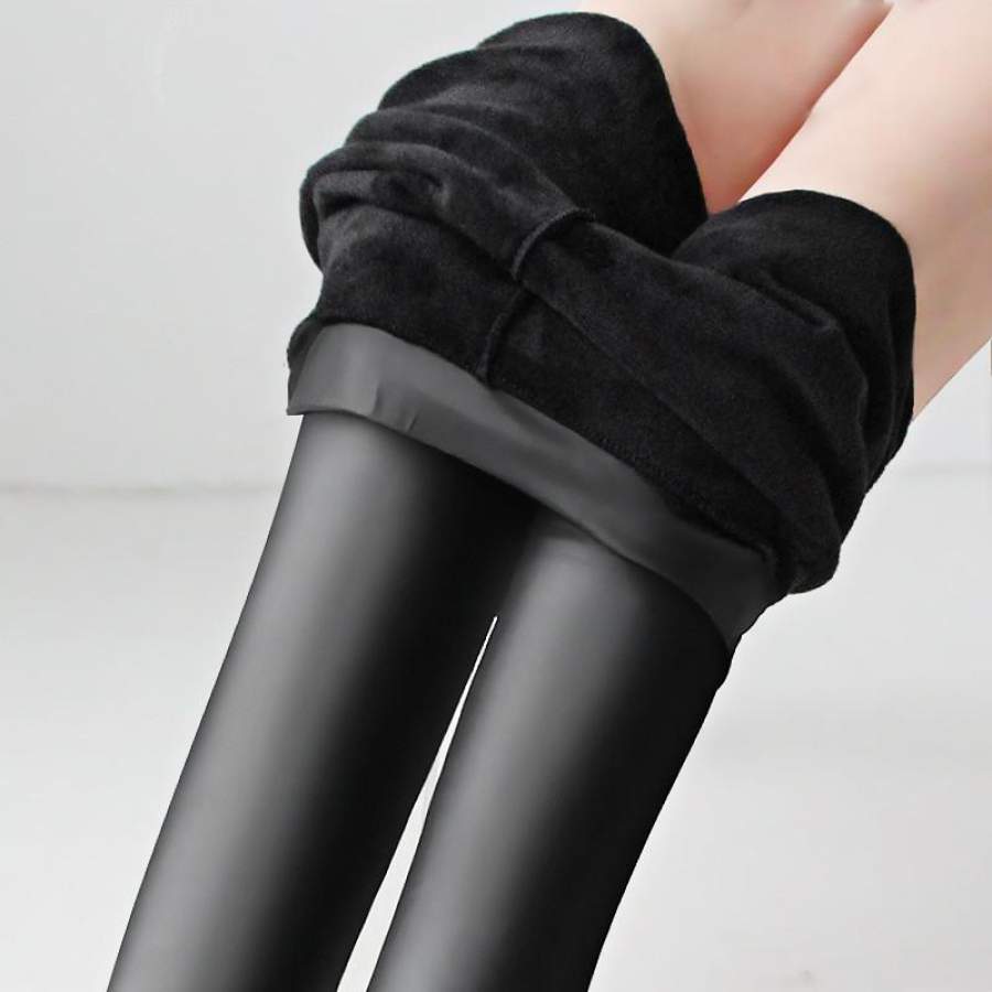 Winter warm 100kg fat MM plus size women plus velvet solid color imitation leather high waist pants Leggings 6XL femme MZ1097