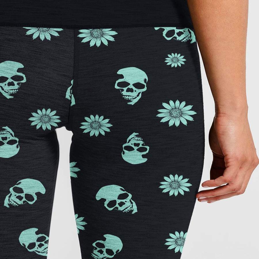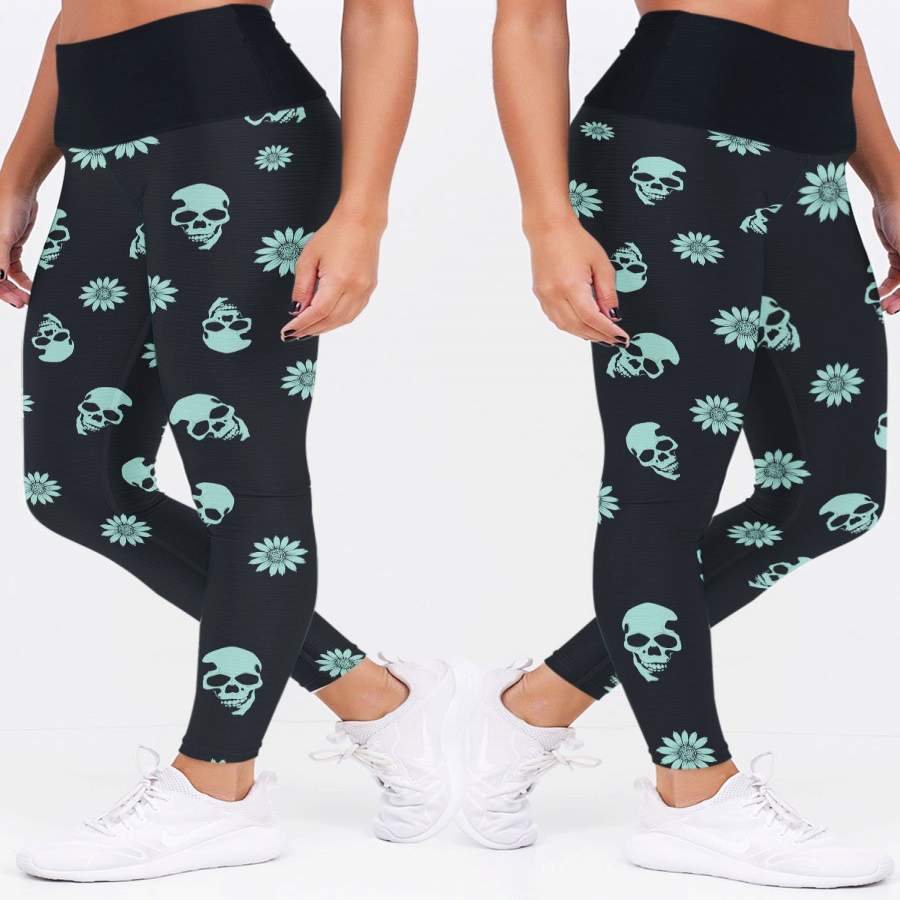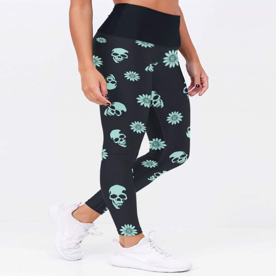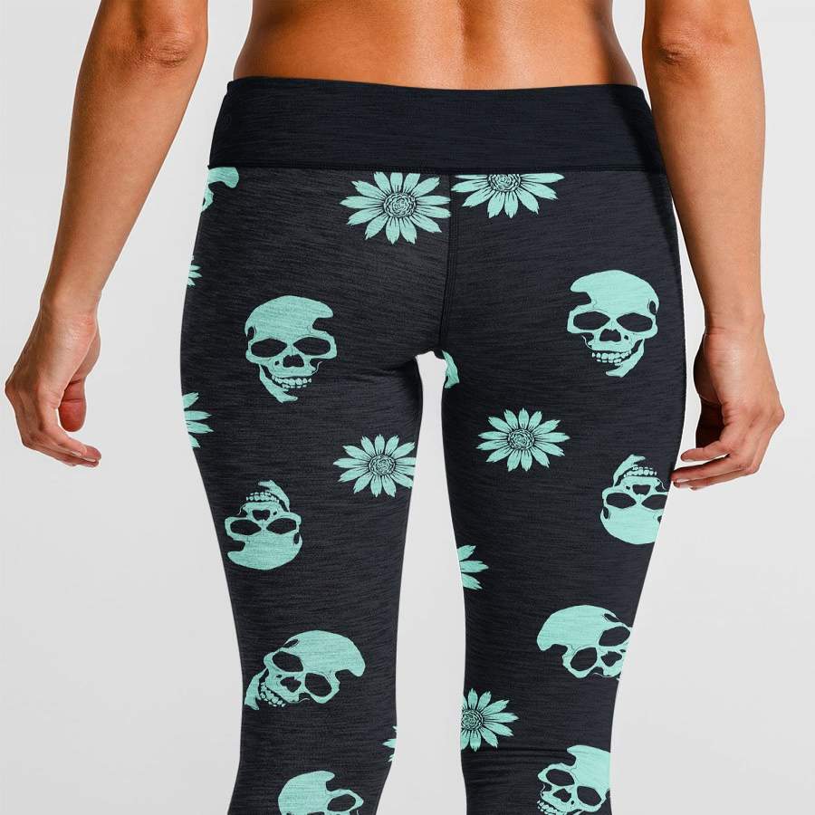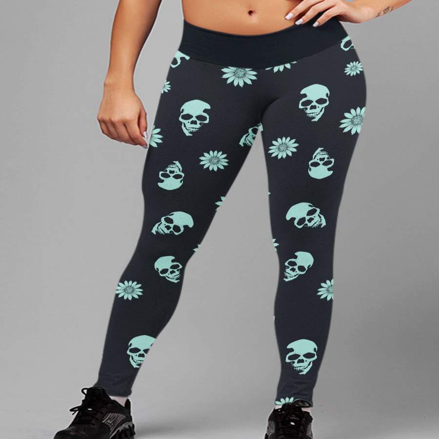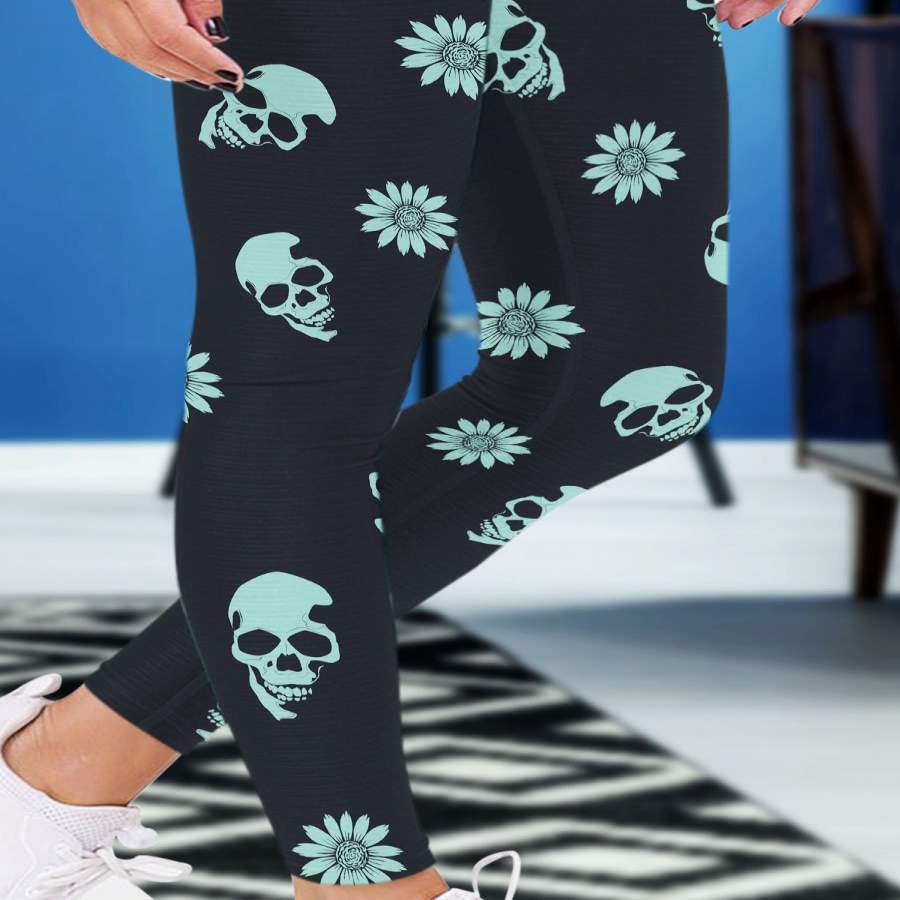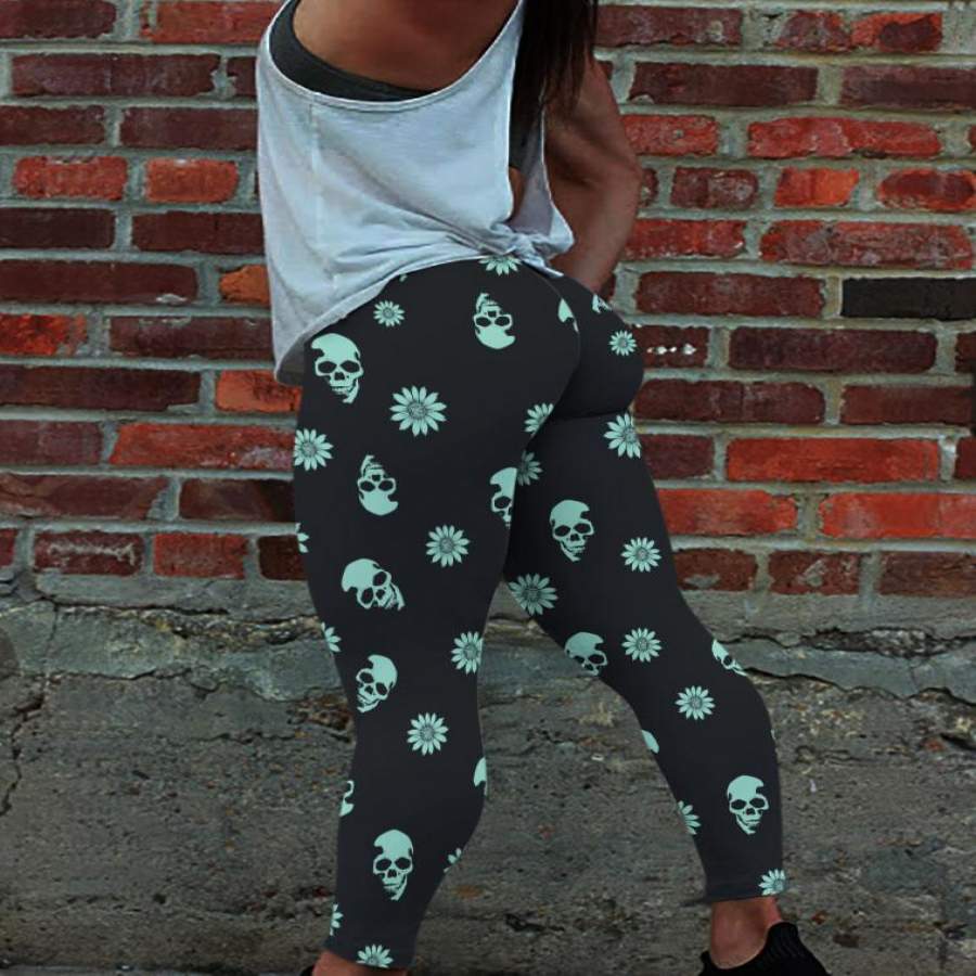Women Elastic Skinny Sexy Skull and Daisy Leggings 012