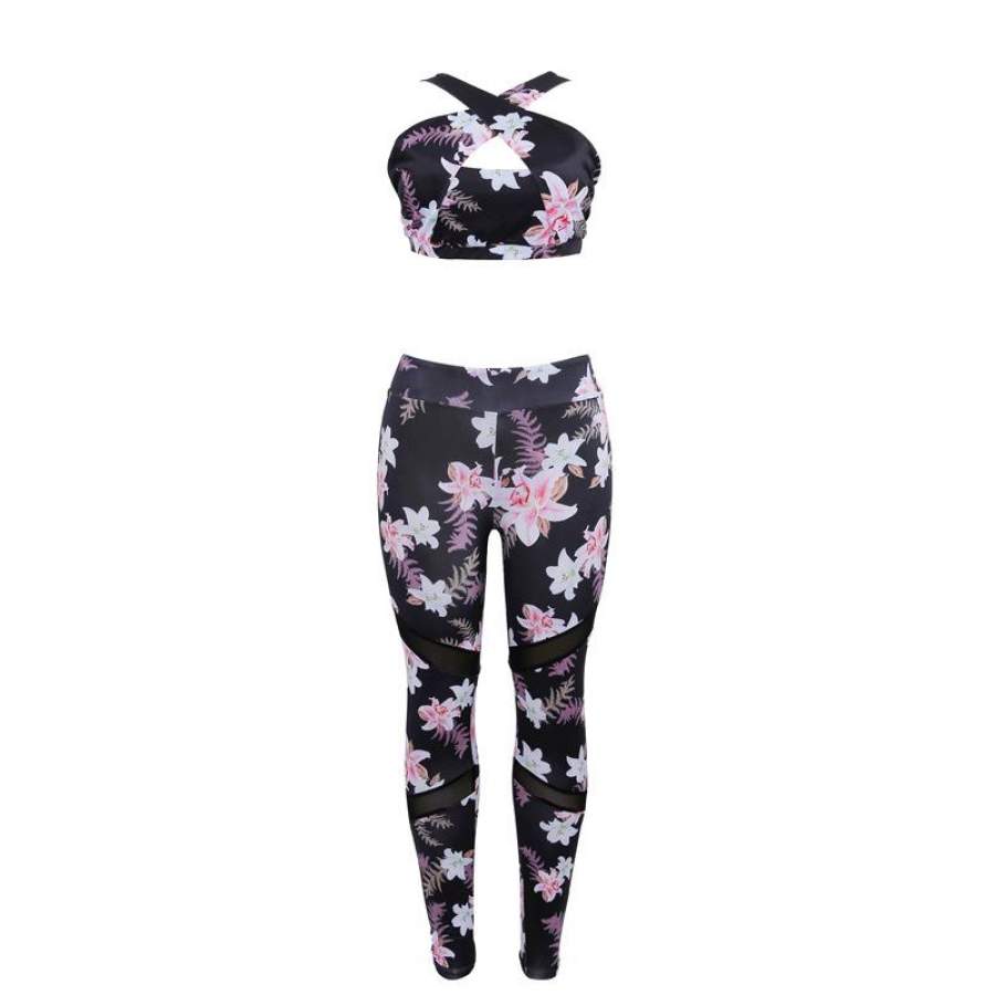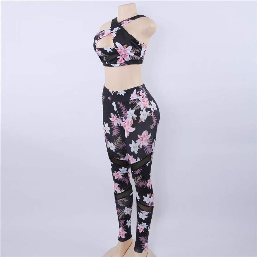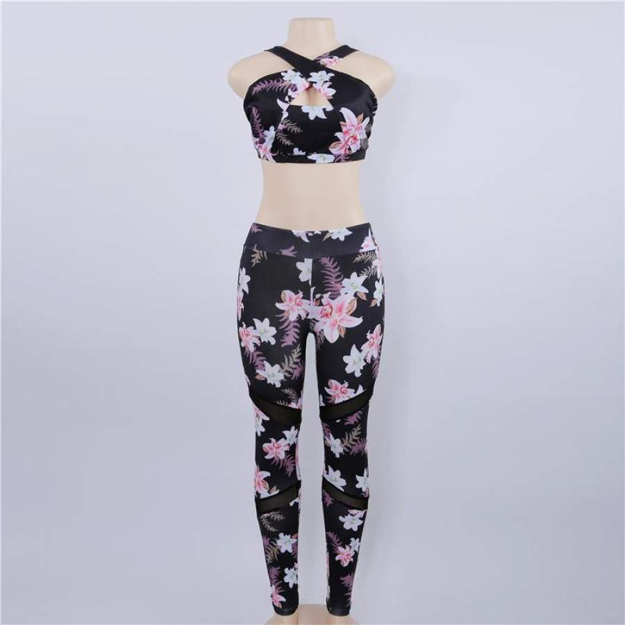 Women Sets 2017 Hollow Printed Tracksuits Crop Tops Bra And Leggings Fitness Suits Skinny Clothing Girl Two Piece Sportwears