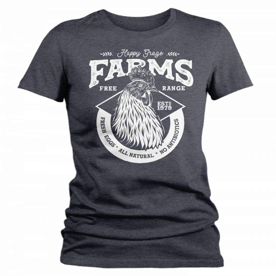 Women’s Personalized Farm T Shirt Vintage Rooster Shirt Farmer Gift Idea Custom Chicken Shirt Farm Shirts Customized TShirt