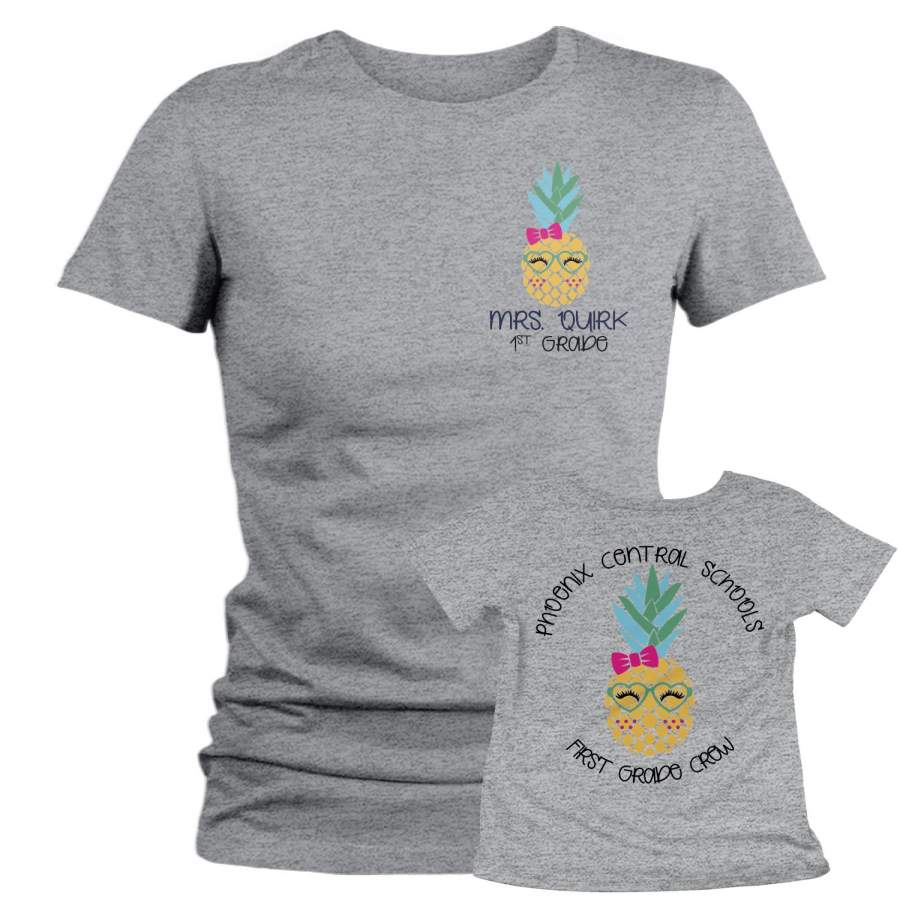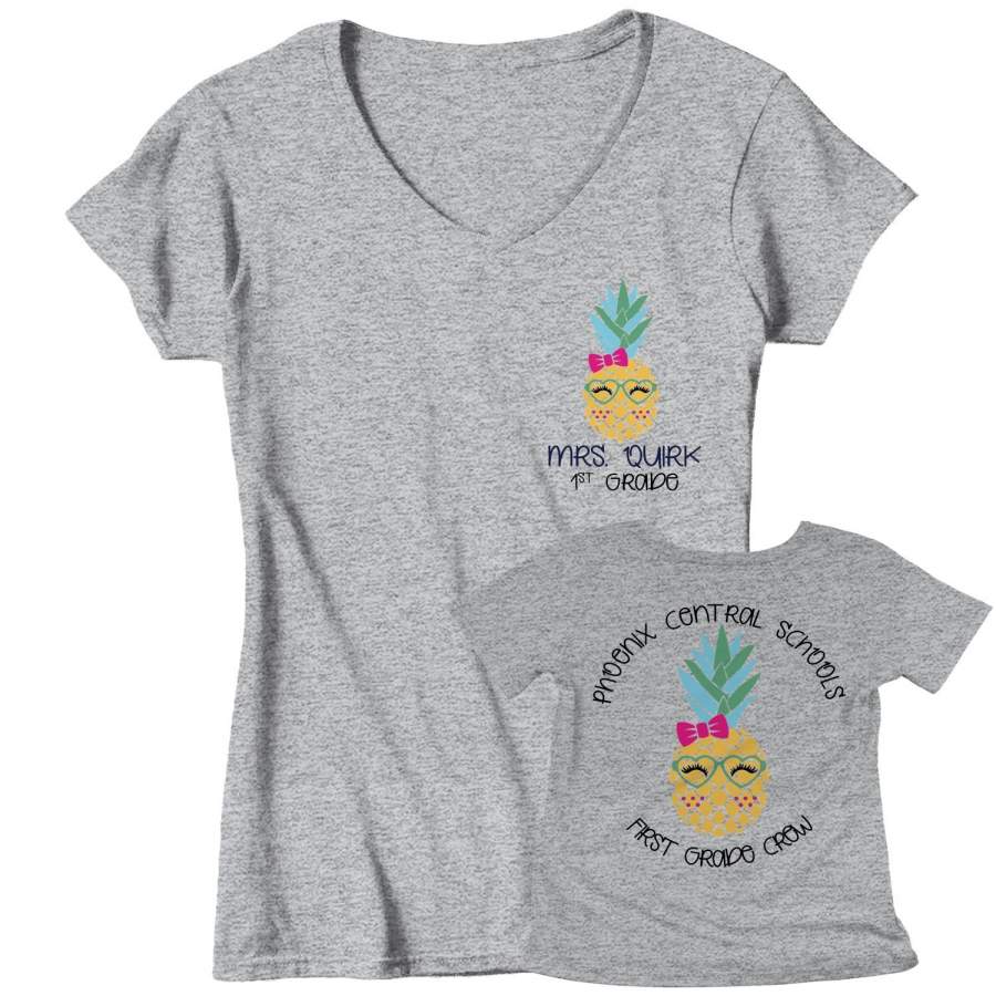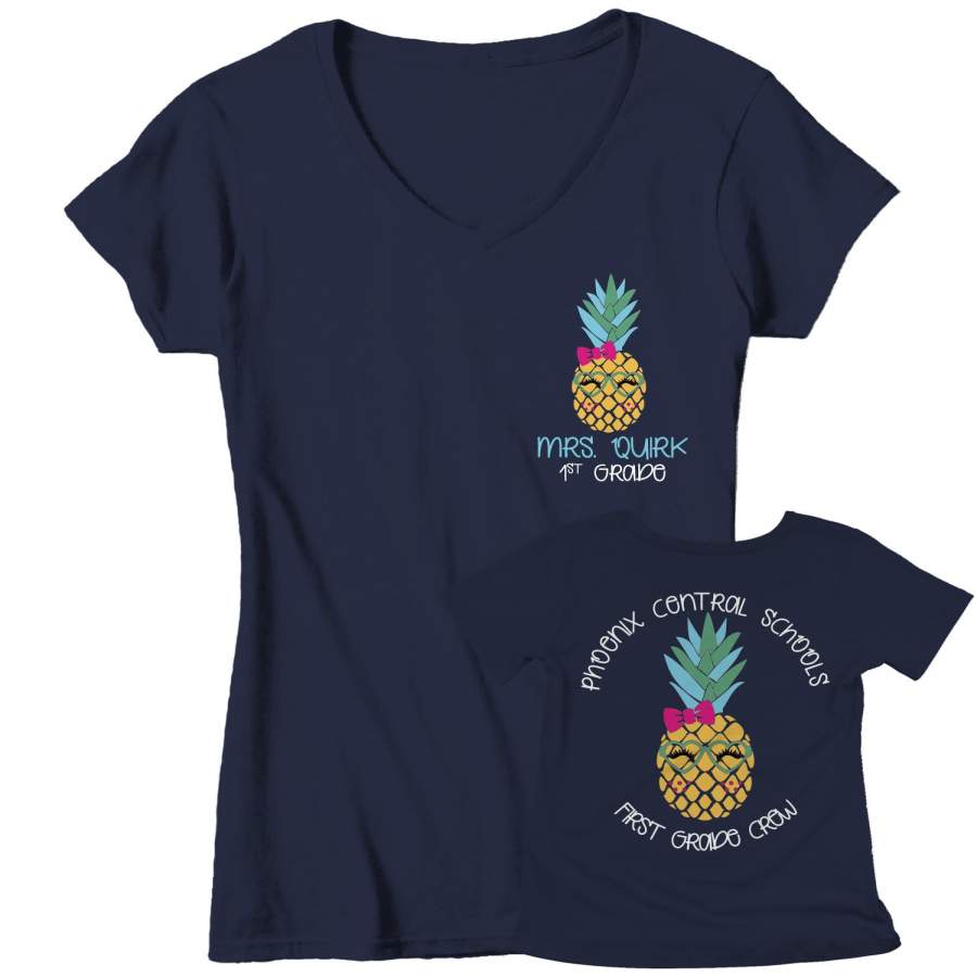 Women’s Personalized Teacher T Shirt Custom Pineapple School Shirt Personalized Pineapple Teacher Shirts Custom Tee