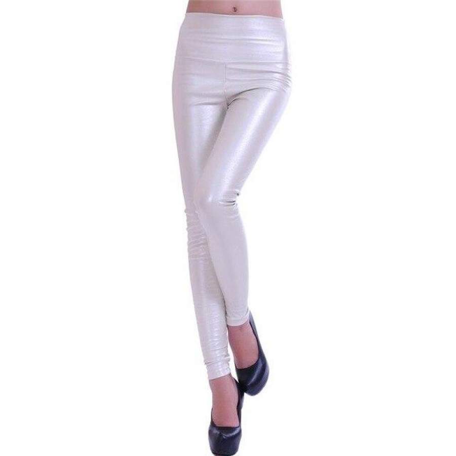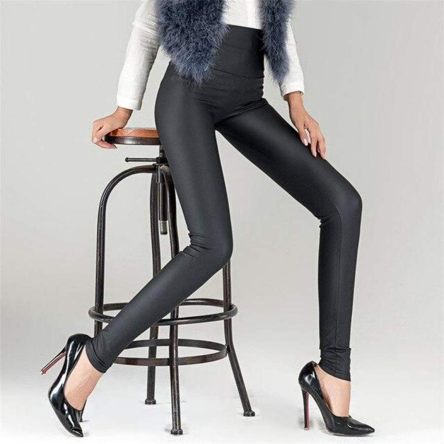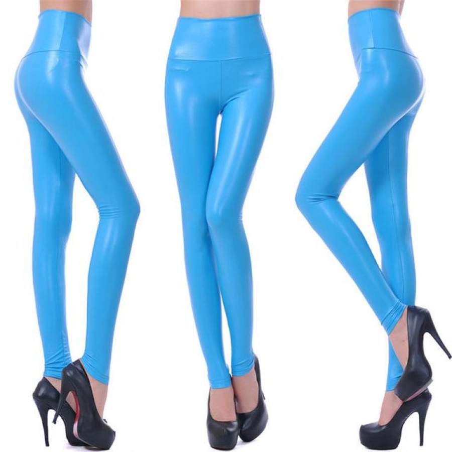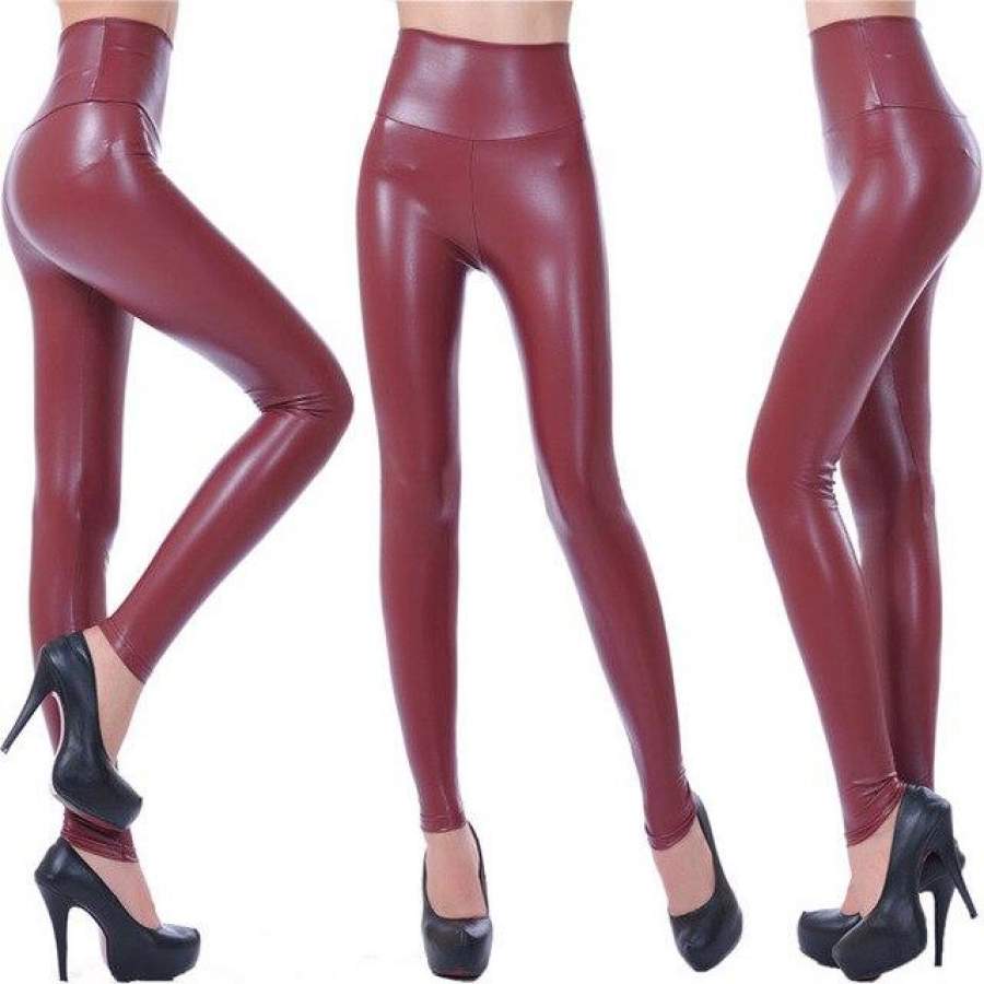 Women’s PU Leather Pants High Elastic Waist Leggings Trousers Fashion Shiny Wet Look