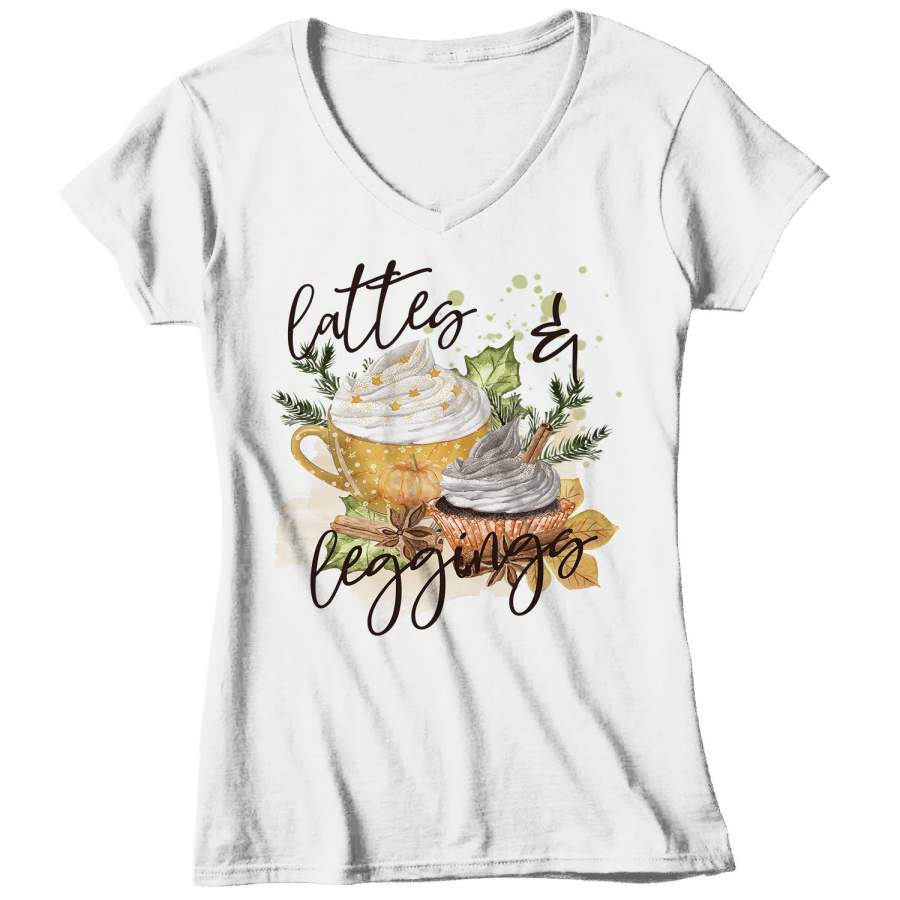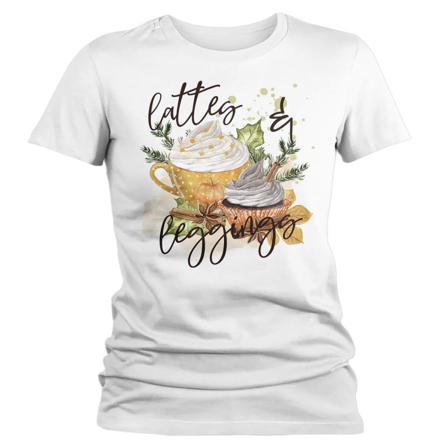Women’s Pumpkin Spice T Shirt Lattes & Leggings Shirt Pumpkin Spice Shirts Latte Cute Watercolor Fall Shirt
