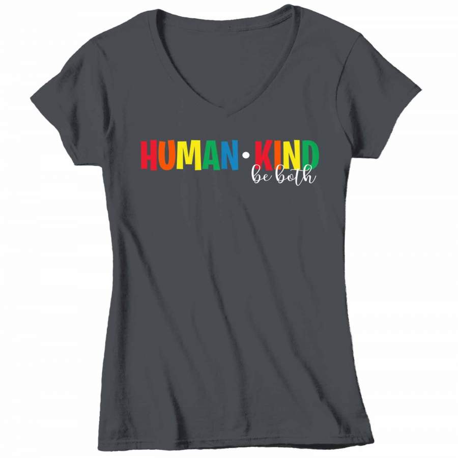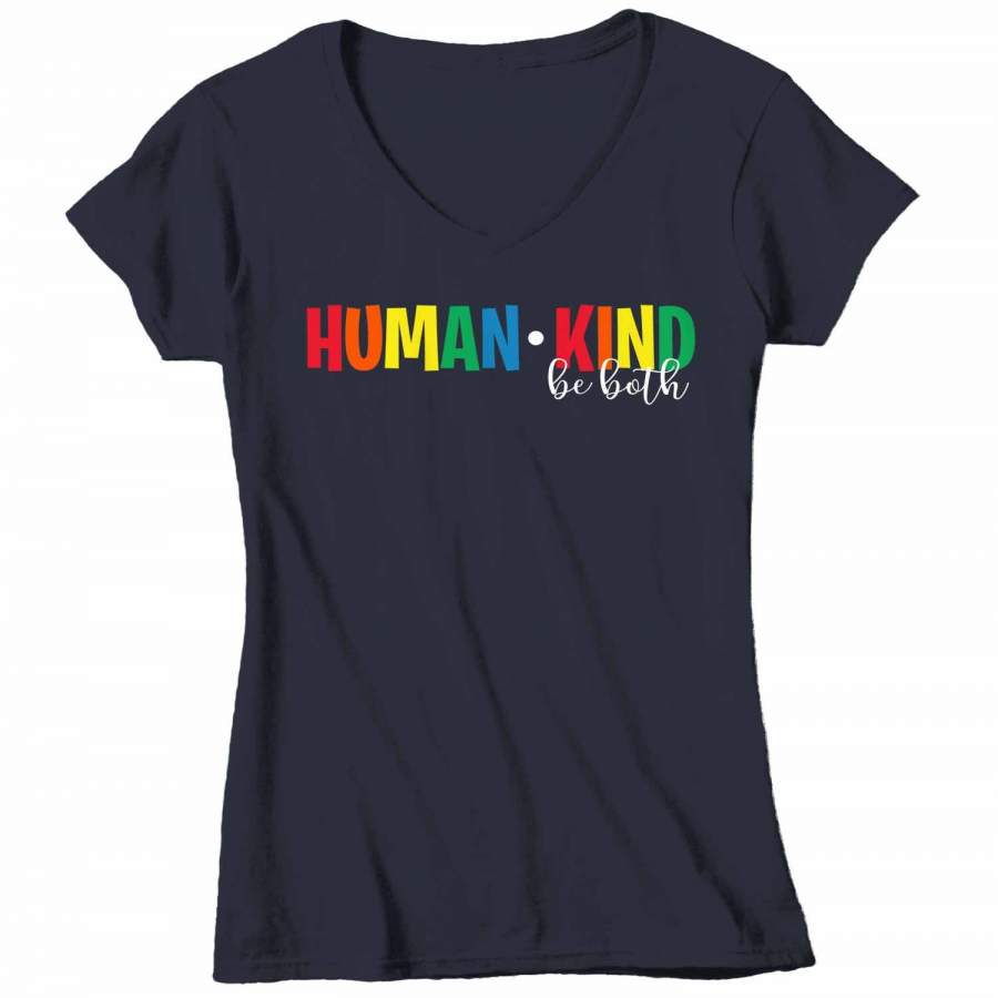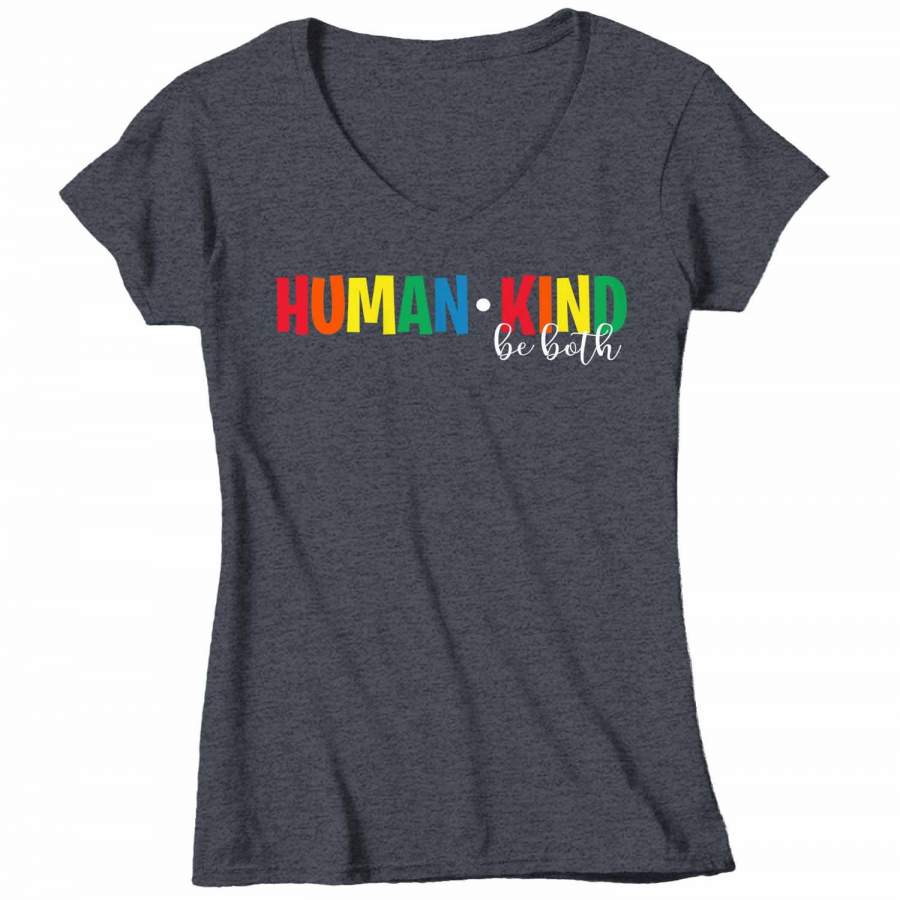Women’s V-Neck Be Kind T Shirt Kindness Shirts Human Kind Shirt Be Both Shirts Inspirational Shirts Vintage Shirt