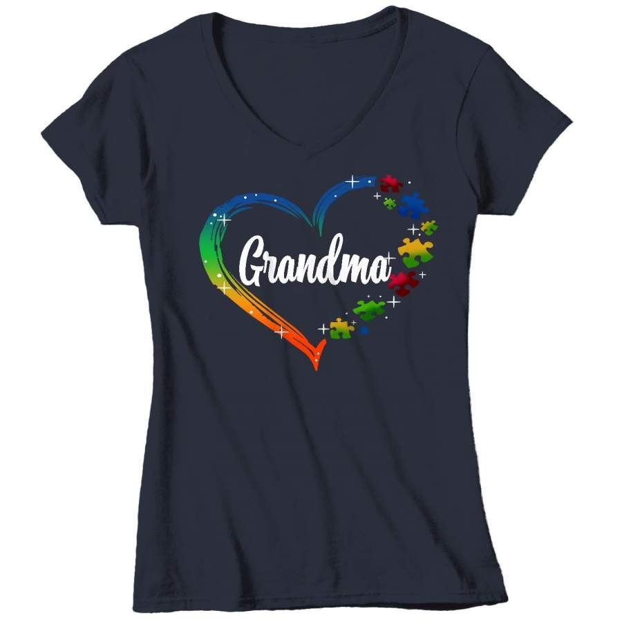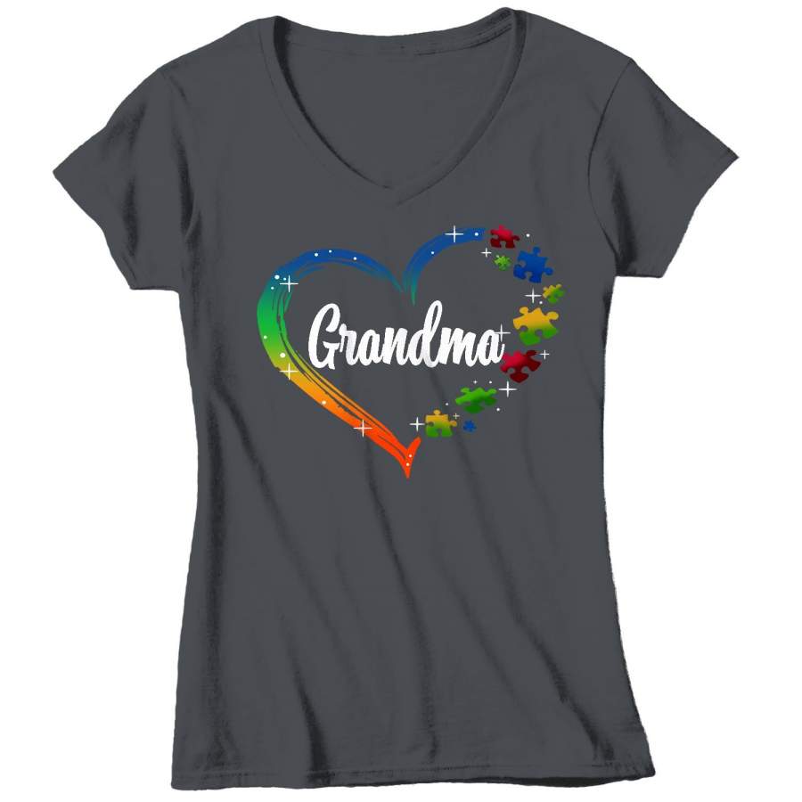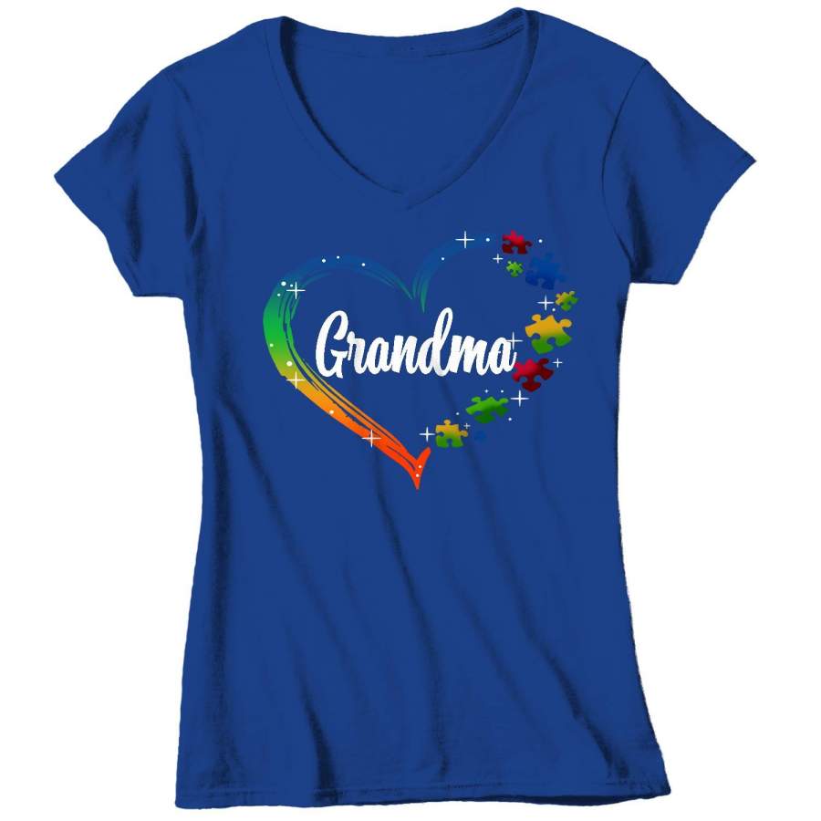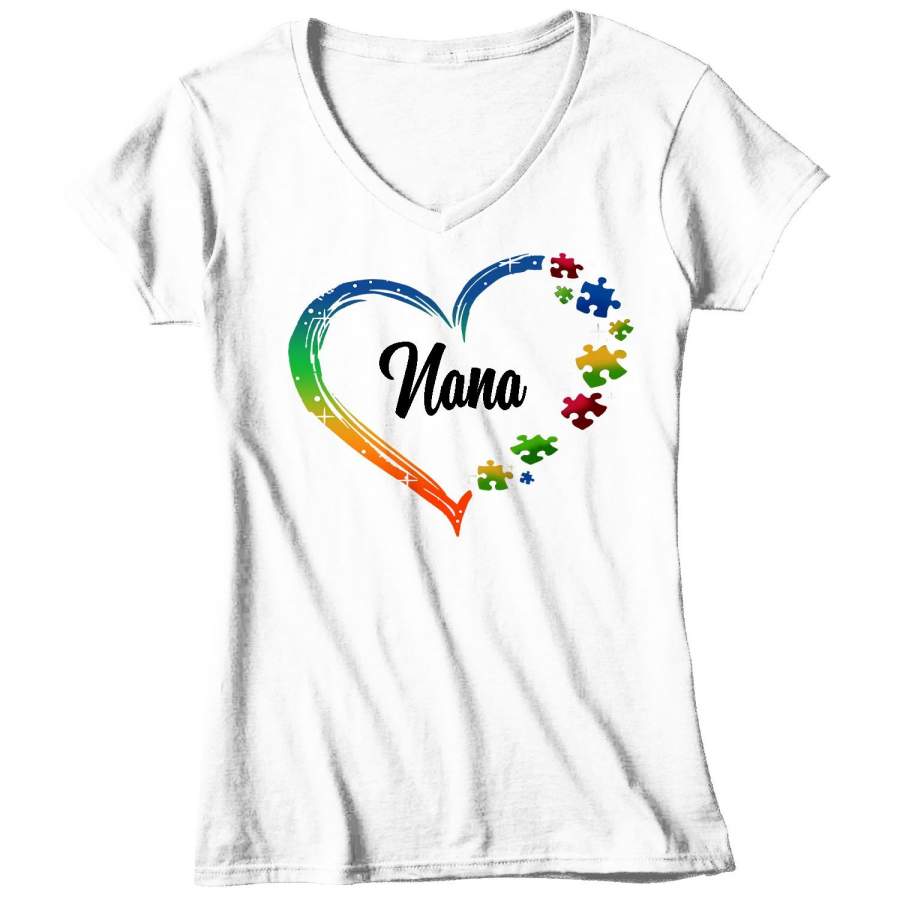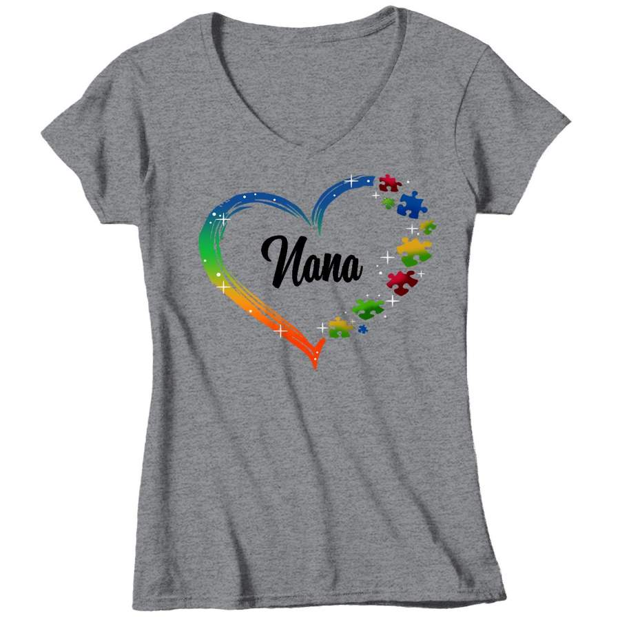 Women’s V-Neck Personalized Autism T Shirt Heart Autism Shirts Custom Shirts Grandma Mom Shirt Aunt Custom Tee