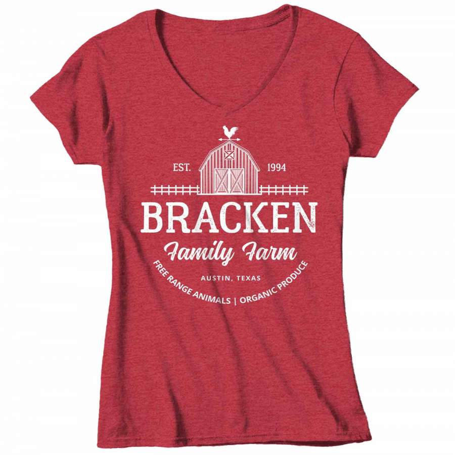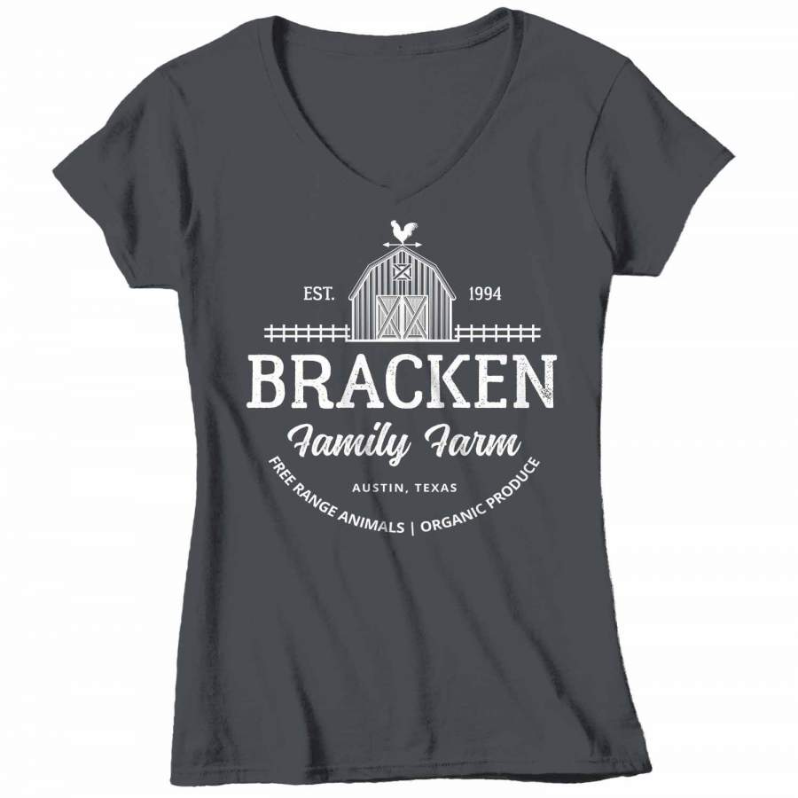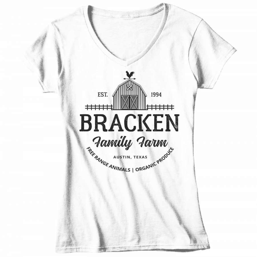 Women’s V-Neck Personalized Farm T Shirt Vintage Farmer Shirt Farmer Gift Idea Custom Barn Cow Tee Shirts Customized TShirt