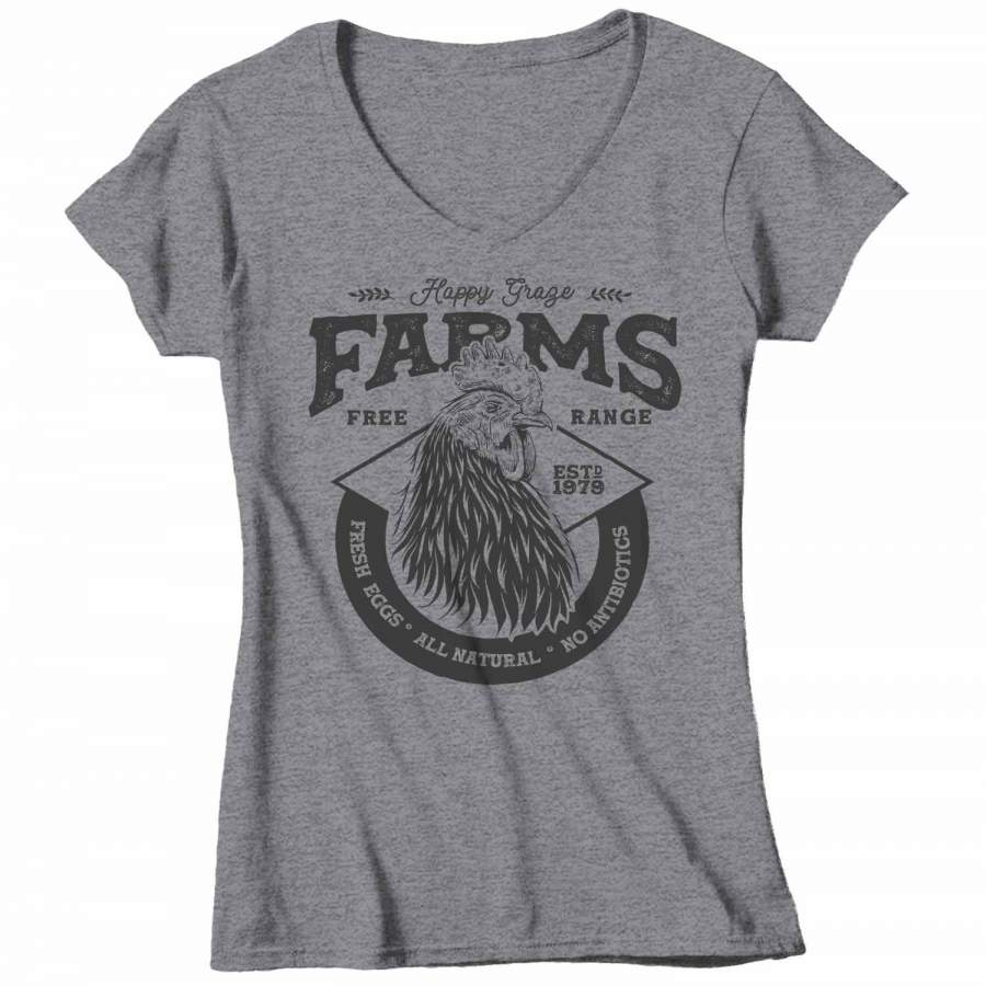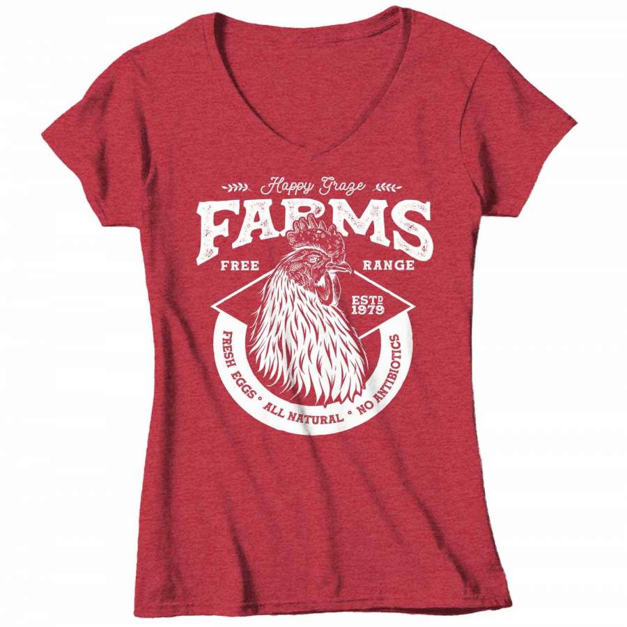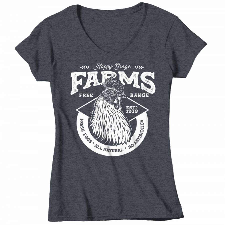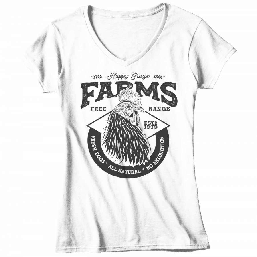 Women’s V-Neck Personalized Farm T Shirt Vintage Rooster Shirt Farmer Gift Idea Custom Chicken Shirt Farm Shirts Customized TShirt