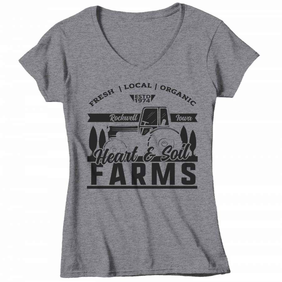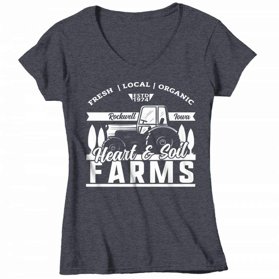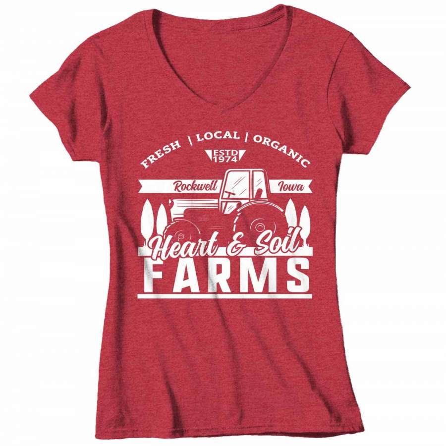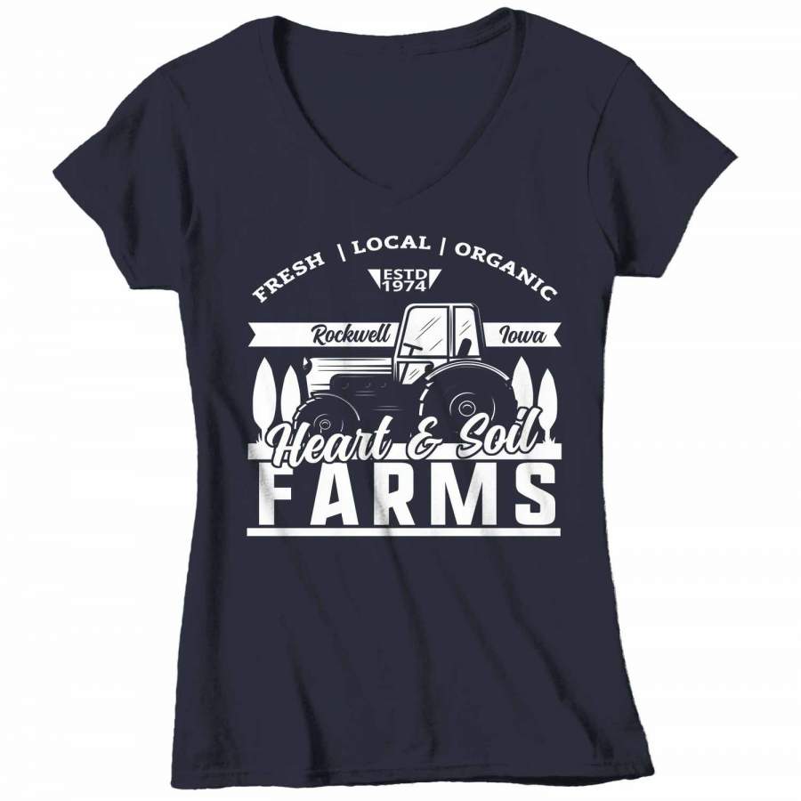 Women’s V-Neck Personalized Farm T Shirt Vintage Tractor Shirt Farmer Gift Idea Custom Tractor Field Tee Shirts Customized TShirt