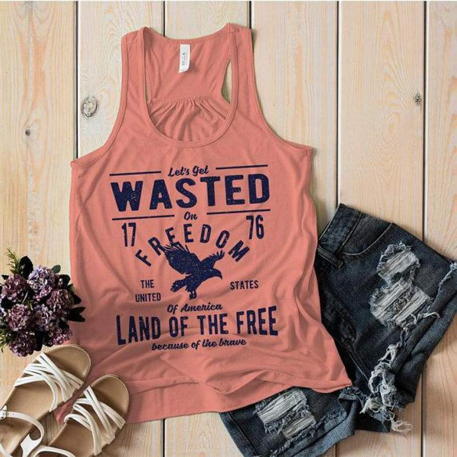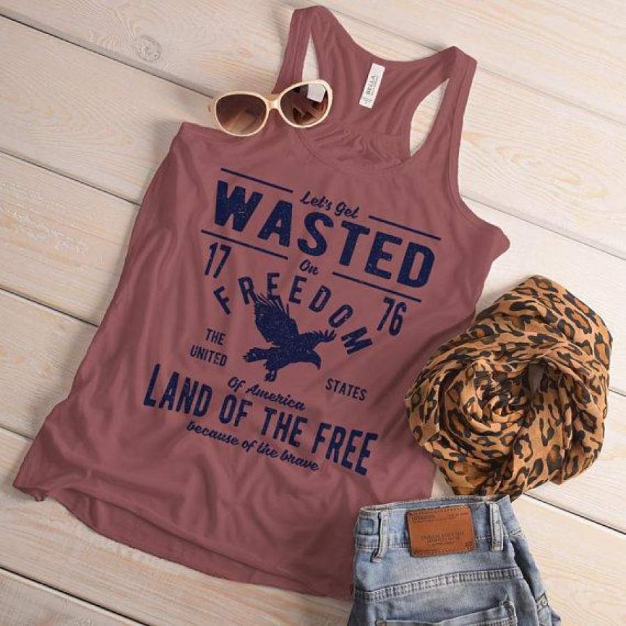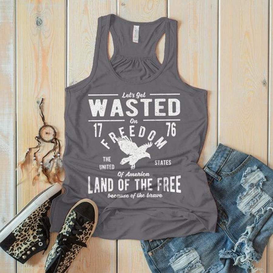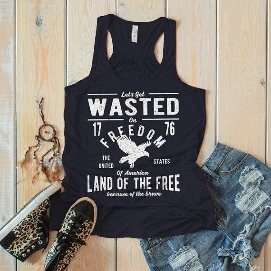 Women’s Wasted On Freedom Tank 4th July Independence Day Vintage Shirts Graphic Tee Eagle Top